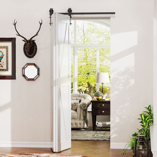 2.5FT Bi-Folding Sliding Barn Door Hardware Track Kit, Black Roller Kit for 2 Doors, J Shape(No Door)