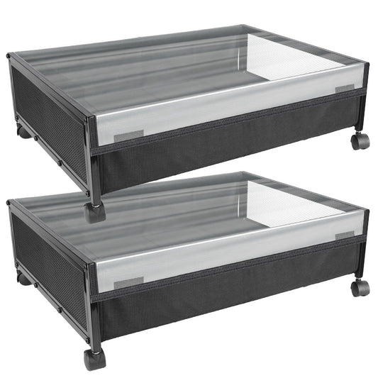 2Pcs Under Bed Storage Containers with 360° Rotatable Wheels Visible Dustproof Cover