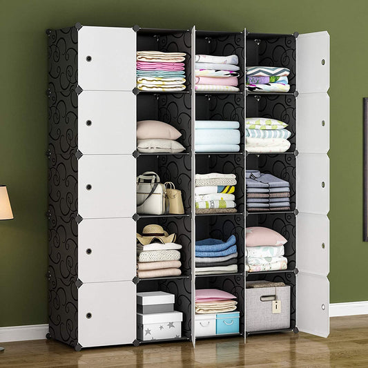 20 Cube Organizer Stackable Plastic Cube Storage Shelves Design Multifunctional Modular Closet Cabinet with Hanging Rod RT