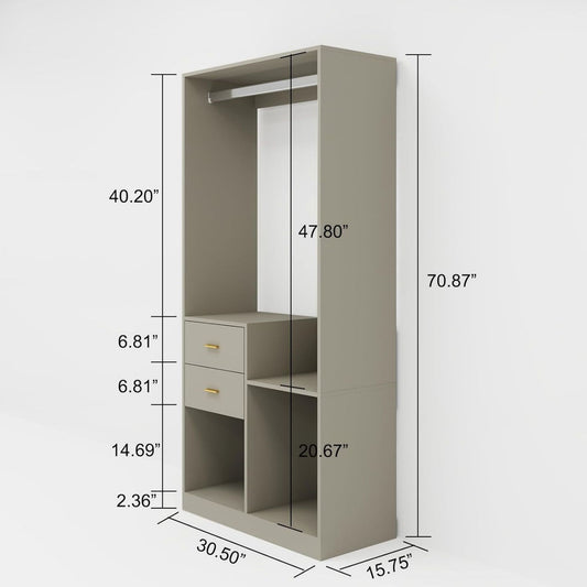 Closet Organizer System, Closet System with Drawers, Clothes Organizer with Closet Shelves Wall Mounted, Grey Wardrobe Closet with Clothing Racks for Hanging Clothes(32"W x 16"D x 71"H)