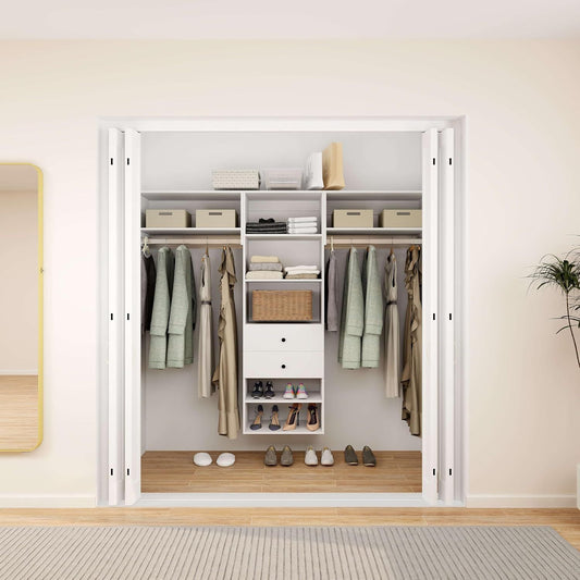 Closet Organizer System, Closet System with Drawers, Clothes Organizer with Closet Shelves Wall Mounted, White Wardrobe Closet with Clothing Racks for Hanging Clothes(64"W x 16"D x 71"H)