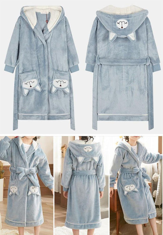 Cute Dog Hooded Sleepwear Thick Bathrobe for Girls Winter Bath Homewear
