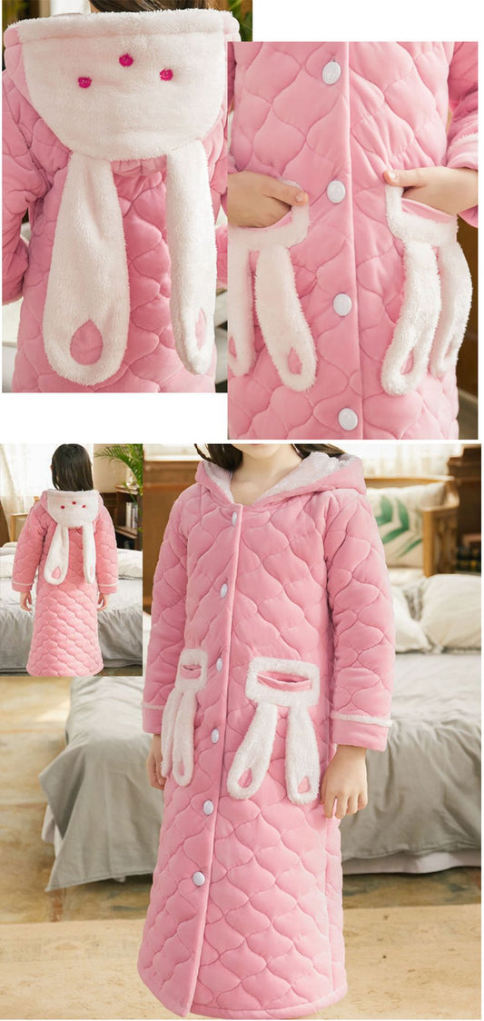 Cute Rabbit Hooded Sleepwear Thick Bathrobe for Girls Winter Bath Homewear