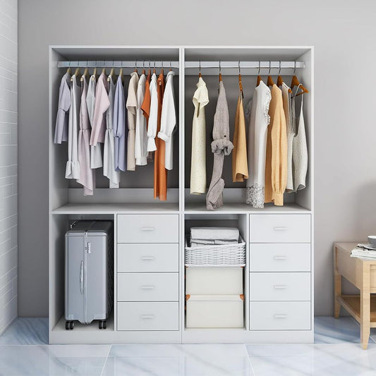 Closet Organizer System, 71"H Walk in Closet System with Drawers, Wood Armoire Wardrobe Closet with Shelves, DIY Wood Closet System with Closet Shelves Wall Mounted (87"W x 16"D x 71"H)