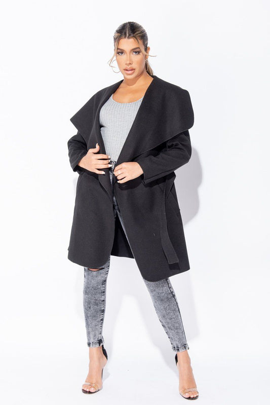 MID LENGTH OVERSIZED BELTED WATERFALL COAT