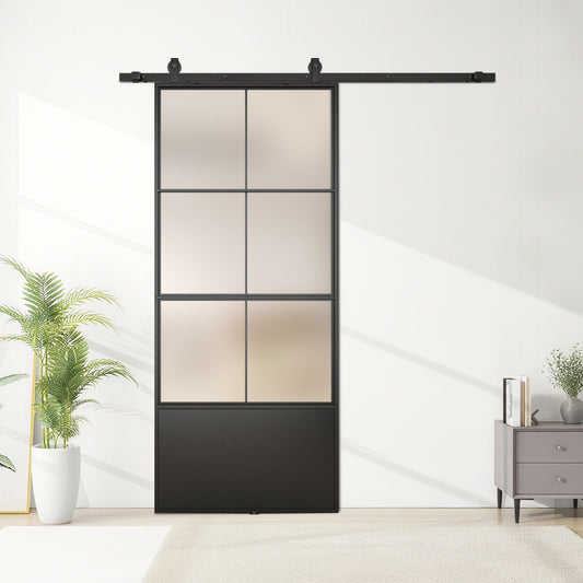 JUBEST 30 "x 80" Glass Barn Door, Frosted Tempered Glass Carbon Steel Pre Drilled Frame Sliding Barn Door Panel with 5FT Hardware Kit and Soft Close Mechanism